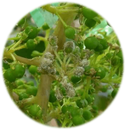 葡萄幼果生长期是白粉病的高发期,特别是在南方高温干旱地区白粉病频频爆发,目前白粉病的抗性越来越大,调解的成本和难度也是越来越高,即使治好后也会在果面形成突出的蛛网状瘢痕,果面被污染,外观品质降低。